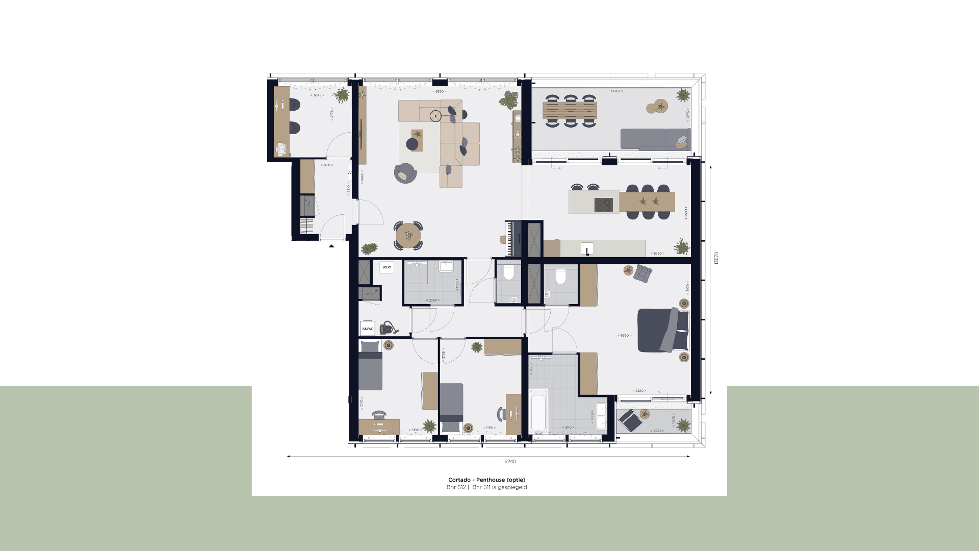 Deze exclusieve woningen liggen op de 9e en hoogste verdieping van Cortado. Binnen vind je drie slaapkamers, waaronder een royale master van 25 m² met ensuite badkamer en apart toilet. Voor de overige kamers is er een ruime tweede badkamer.