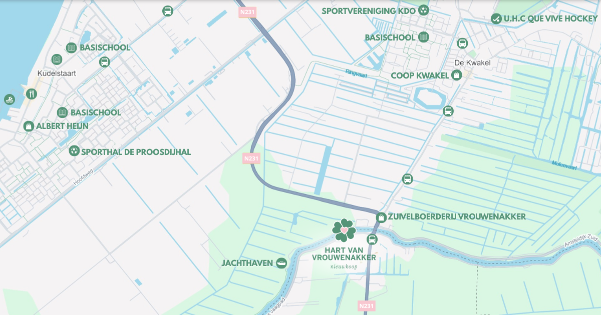 De nieuwe woonbuurt “Hart van Vrouwenakker” verrijst in Vrouwenakker in de gemeente Nieuwkoop, aan het Nieuwveens Jaagpad langs de Amstel én heeft het allemaal. In totaal 82 woningen, zowel koop als huur, in een groene leefomgeving. De kenmerken van het plan zijn groen, geluid, gezond en gezamenlijk.