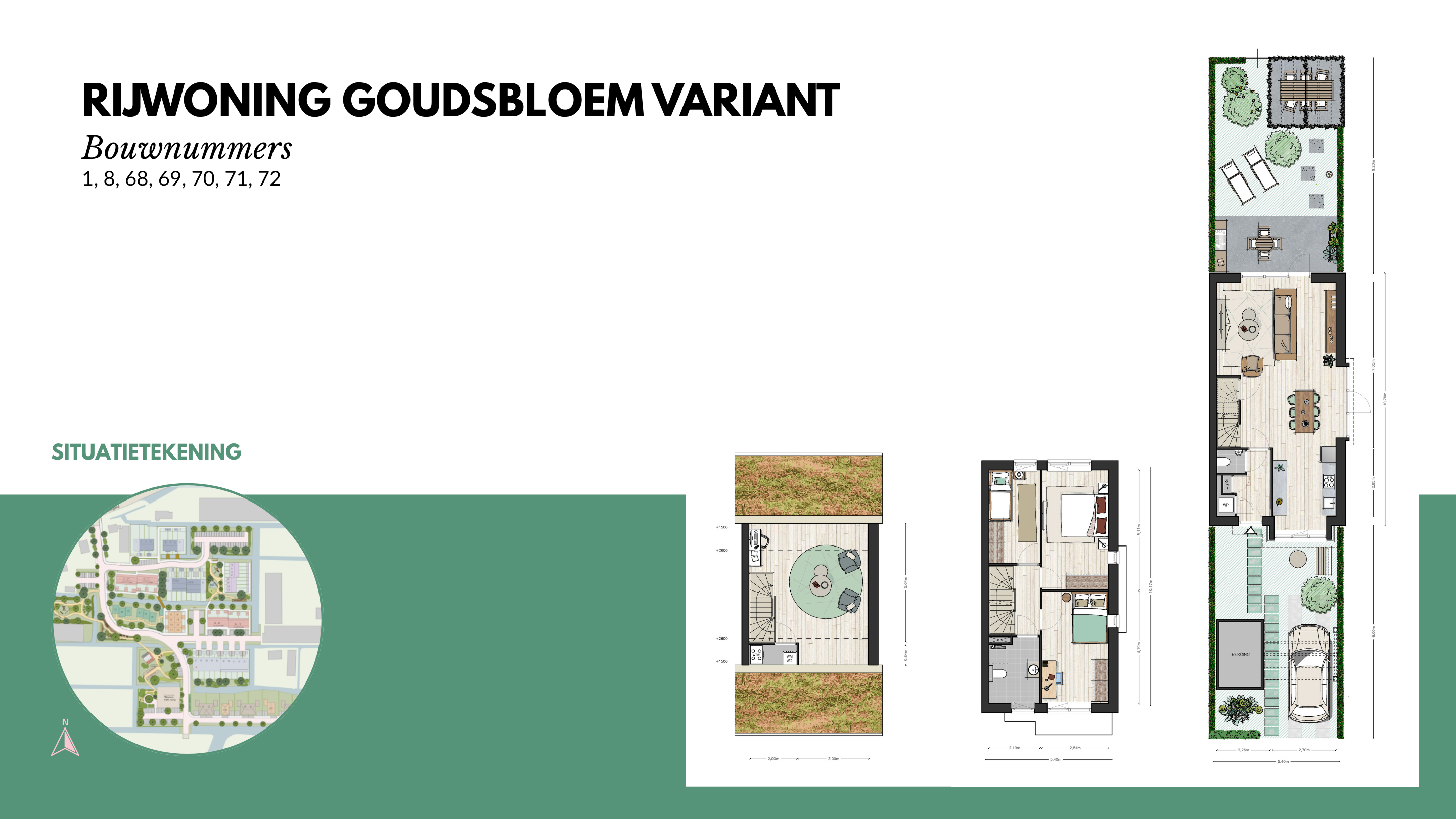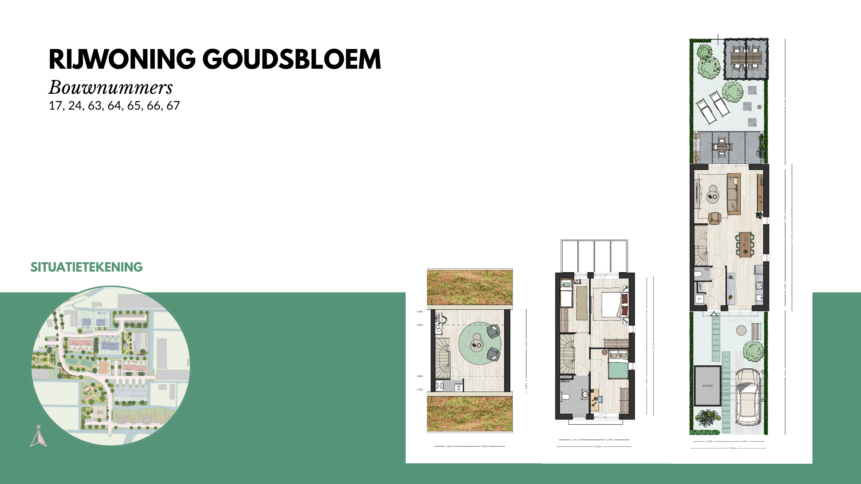 Stap binnen in woningtype Goudsbloem, bouwnummers 1, 8, 17, 24 en 63 t/m 72, en ontdek de perfecte combinatie van comfort, ruimte en moderne voorzieningen in het Hart van Vrouwenakker. Deze woningen zijn ontworpen om jou een comfortabel en aangenaam thuis te bieden, met een woonoppervlakte van circa 132 t/m 135 m2 en alle ruimte die je nodig hebt om te leven, te werken en te ontspannen.