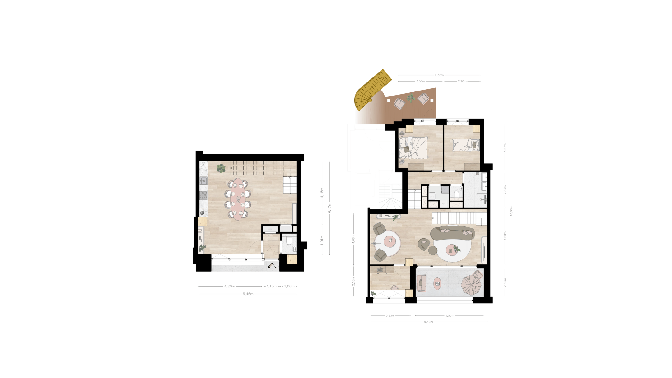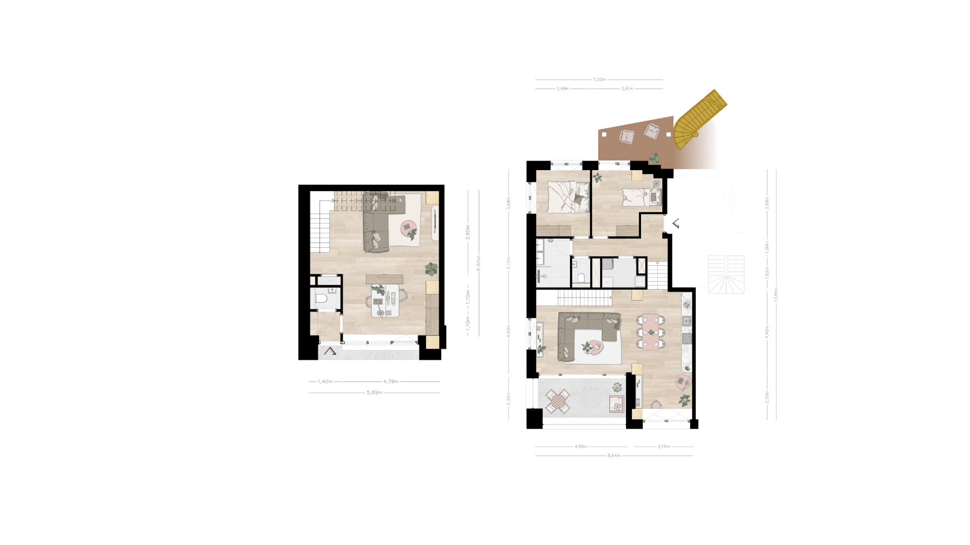 Dit zijn dé twee bijzondere woningen van project Hibi; typen MiGOTO A en B zijn maisonnettes waardoor ze extra veel ruimte bieden. Hier woon je op circa 130 m2, hoe lekker is dat!