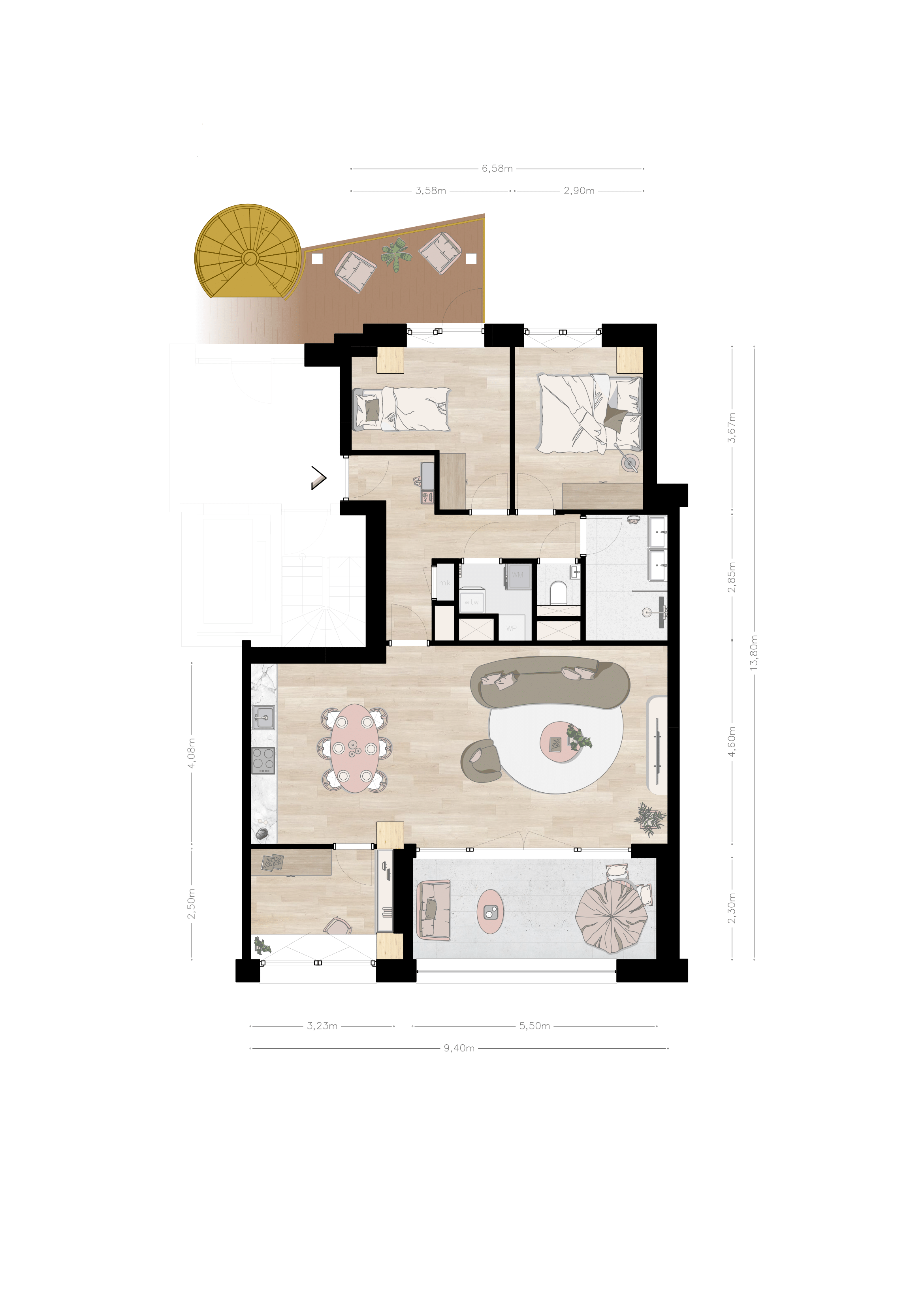 Het leuke van wonen in gebouw MiGOTO is dat alle 8 de appartementen aan beide zijden een ruimte hebben om lekker buiten te ontspannen! MiGOTO types C en D vind je op de 2e tot en met 4e verdieping. Dit 4-kamerappartement is circa 90 m2 groot biedt alles wat je nodig hebt.