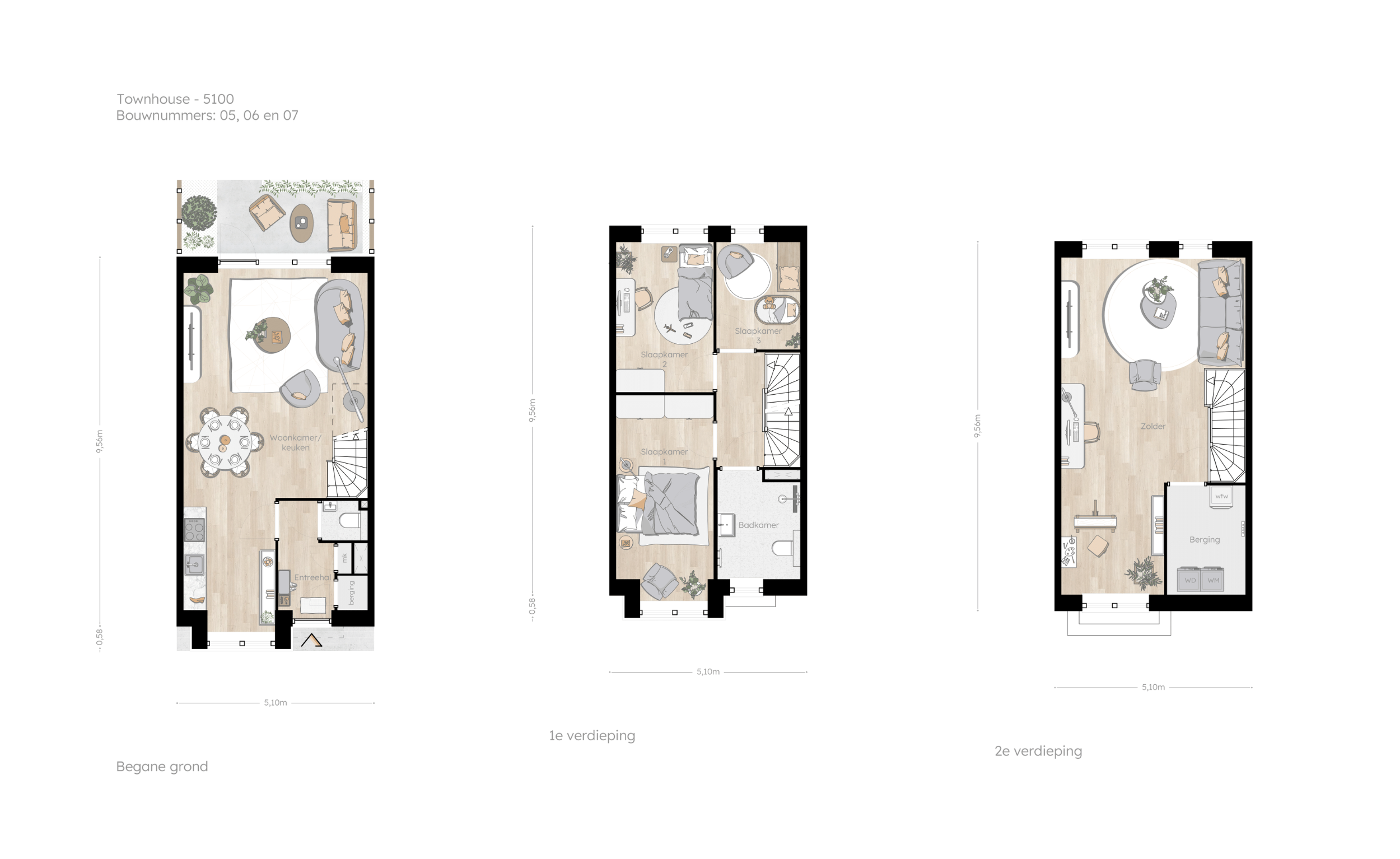 5100 - Townhouse zijn de bouwnummers 05, 06 en 07.