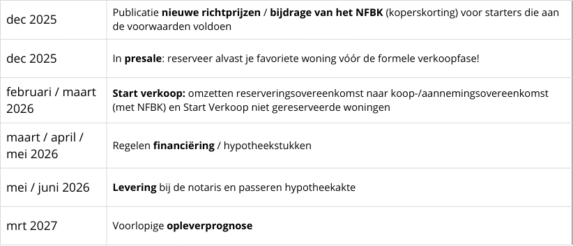 Hotnews: Zojuist is bekend geworden dat 33 van de 38 woningen met forse 'koperskorting' via het NFBK aangeboden kunnen worden aan starters die aan de voorwaarden voldoen. Lees er meer over in dit nieuwsbericht of op onze speciale NFBK-pagina.
