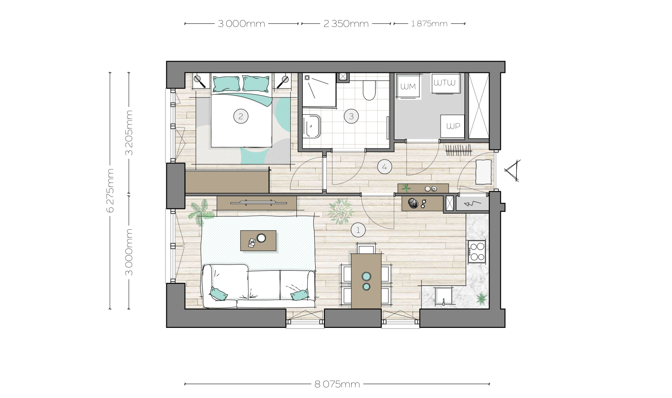 - Verkooptekening - 2-kamer Appartement - Bouwnummer 01